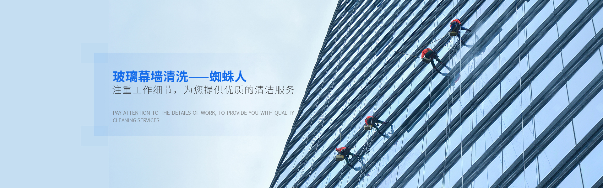 專業從事高空外牆清洗、外牆翻新(xīn)、外牆防水等高空服務,服務眾多(duō)知名建築,擁有完善的服務體(tǐ)係與資質認證。